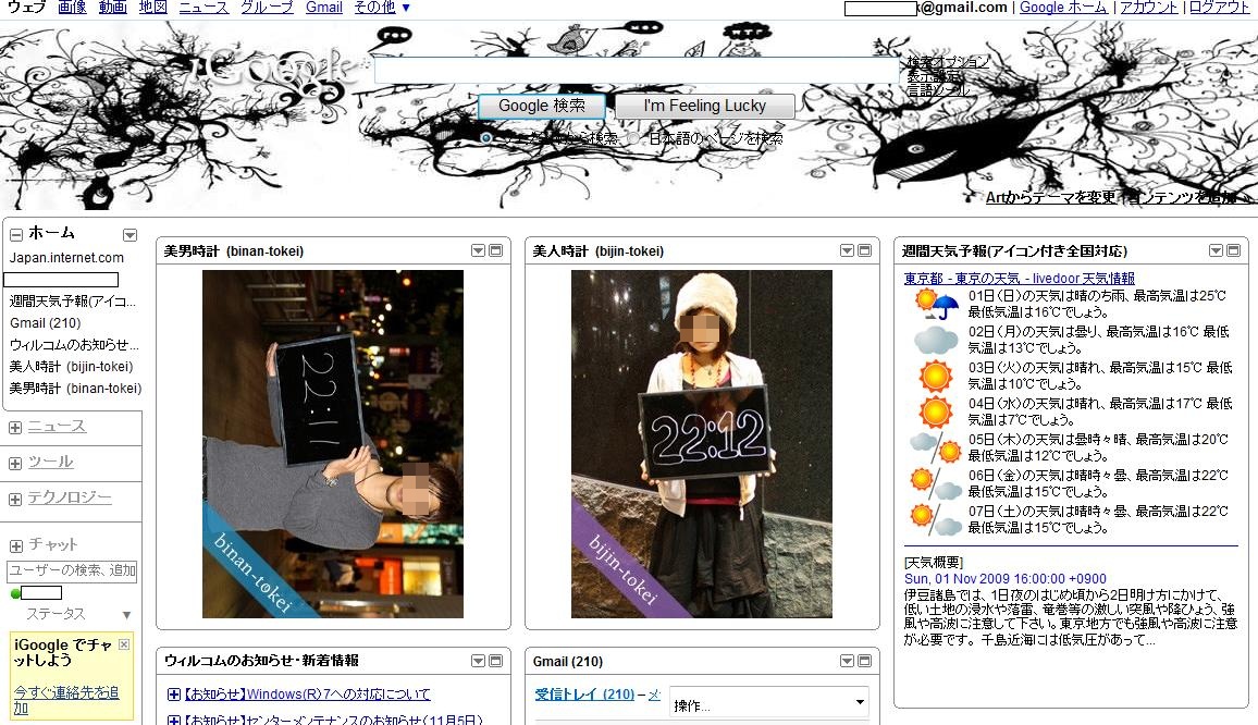 iGoogleガジェットとして利用できる、『美人時計』と『美男時計』並べてみました。