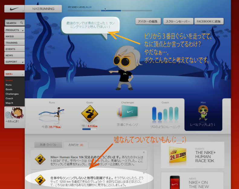 どうやら、NIKE+のサイトさんからボク、嘘つき扱いされてるみたいだし、