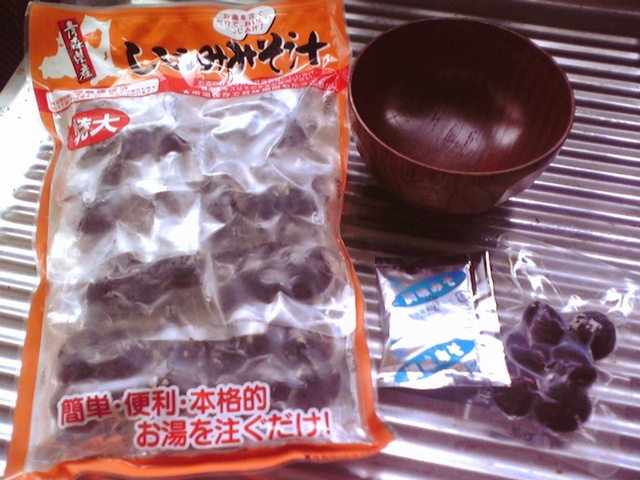 密封されたしじみと、溶けやすい状態になった味噌を、