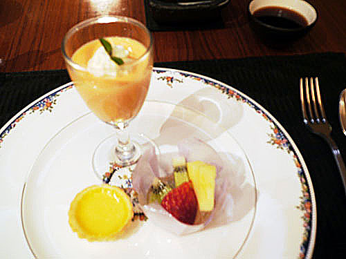 グラスの足元のは果物盛り合わせとエッグタルト。 ←なんか懐かしい。